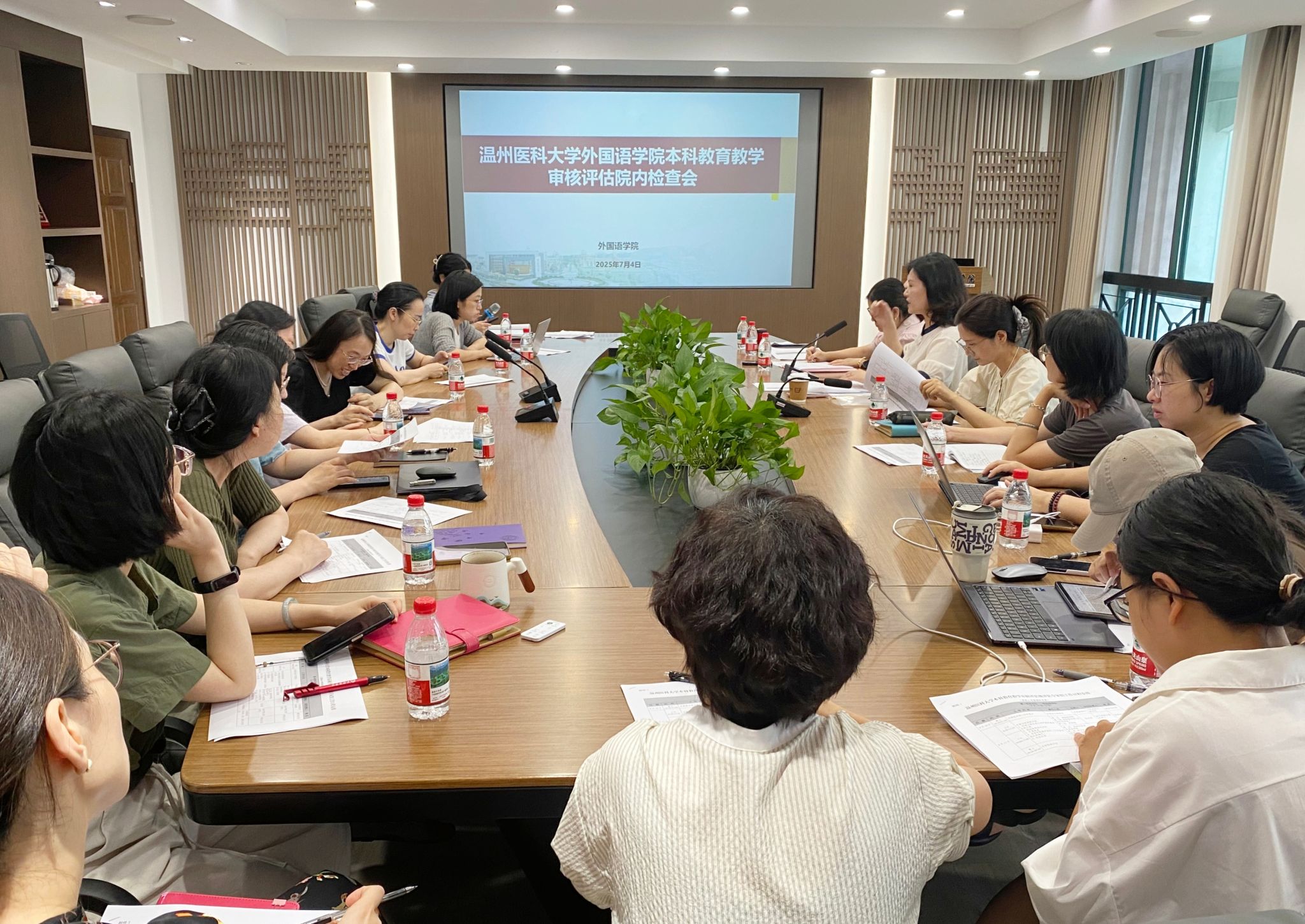 副院长章艳乐、全体教研管理干部、教学工作委员会委员、办公室相关负责老师共计二十余人参加检查会。会议由章艳乐副院长主持。