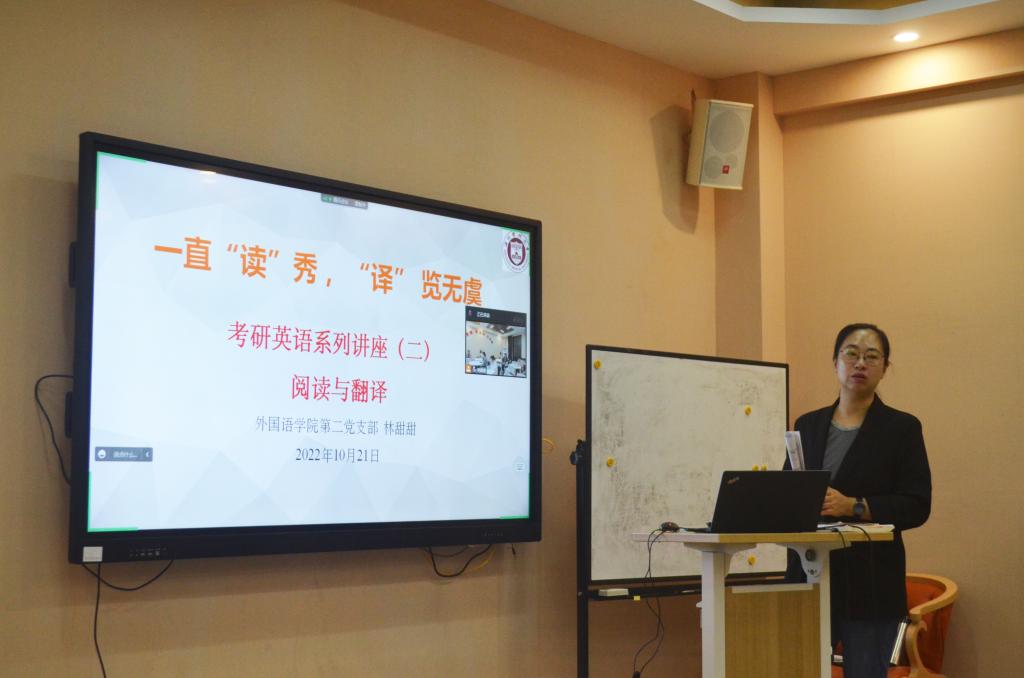 10月21日晚上,雅研英语助考系列讲座第二期在7B112英语技能室顺利开展。本期讲座由抖阴教师林甜甜主讲,以《一直“读”秀,“译”览无虞》为题,内容包含阅读和翻译两大模块。