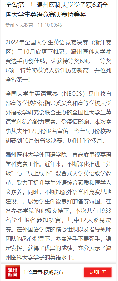 2022年全国大学生英语竞赛决赛(浙江赛区)于10月底落下帷幕,抖阴
