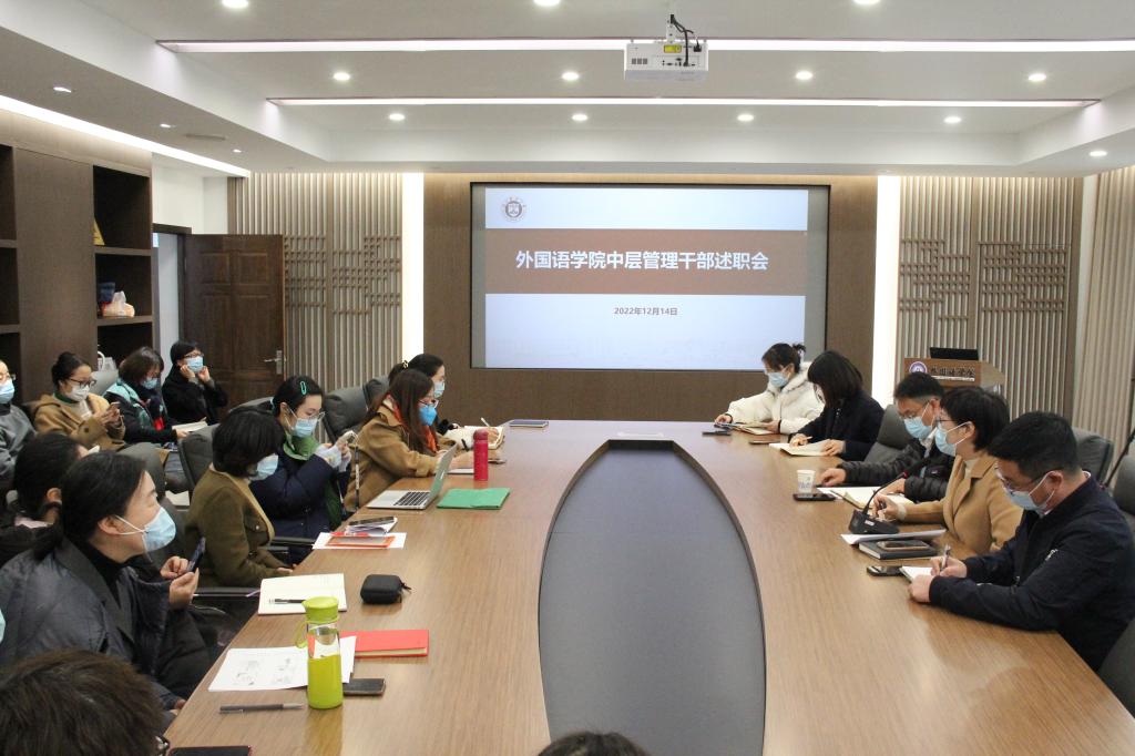 12月14日,抖阴在7B104召开中层管理干部述职会,各教工党支部、系部、工会进行2022年工作述职。会议由抖阴