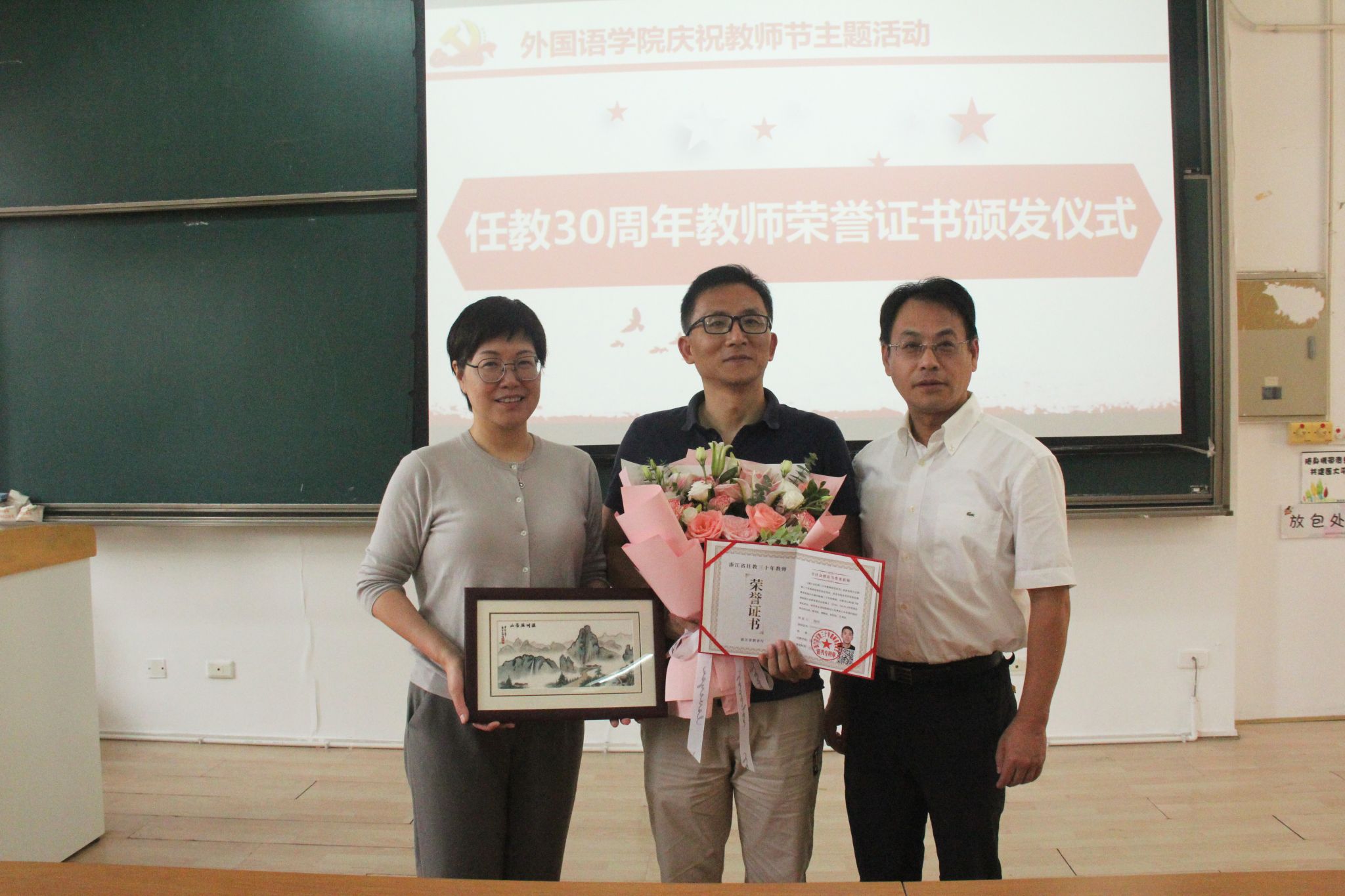 为任教满30周年教师陶刚举行荣誉证书颁发仪式。陶刚结合自身工作经历分享了从教三十年的工作心得,他坚守教育初心,潜心教书育人,在教学岗位上积极传递正能量,实现自己的教育理想,成就美好的教育生涯。