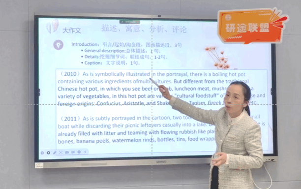 11月28日,抖阴外语考试培训中心主任伊迎开展考研英语作文指导讲座,对考研英语写作进行全方位的解析。她详细介绍考研英语的题型,聚焦考研英语的写作要求,并从评分标准和考查目标入手,为大家深度解读考研英语写作时应关注的重难点。在讲解历年真题时,她着重分析大作文和小作文的写作框架、主题描写、论证方法等方面,并强调:“在考研英语写作中,最重要的是掌握“描述、寓意、分析、评论”四步法。”在整个讲座过程中,伊迎语言生动幽默、见解独到,内容贴近学生实际,有较强的指导性和操作性,整场讲座氛围轻松活跃。