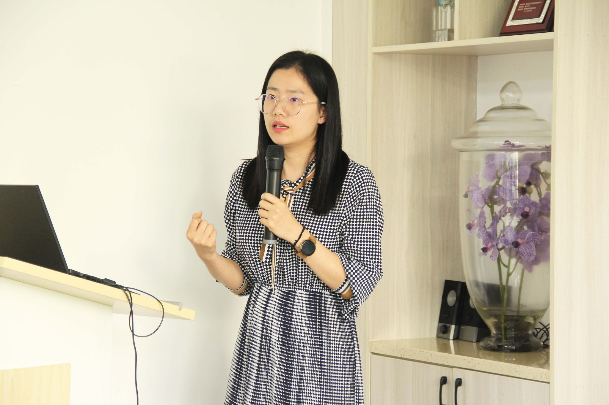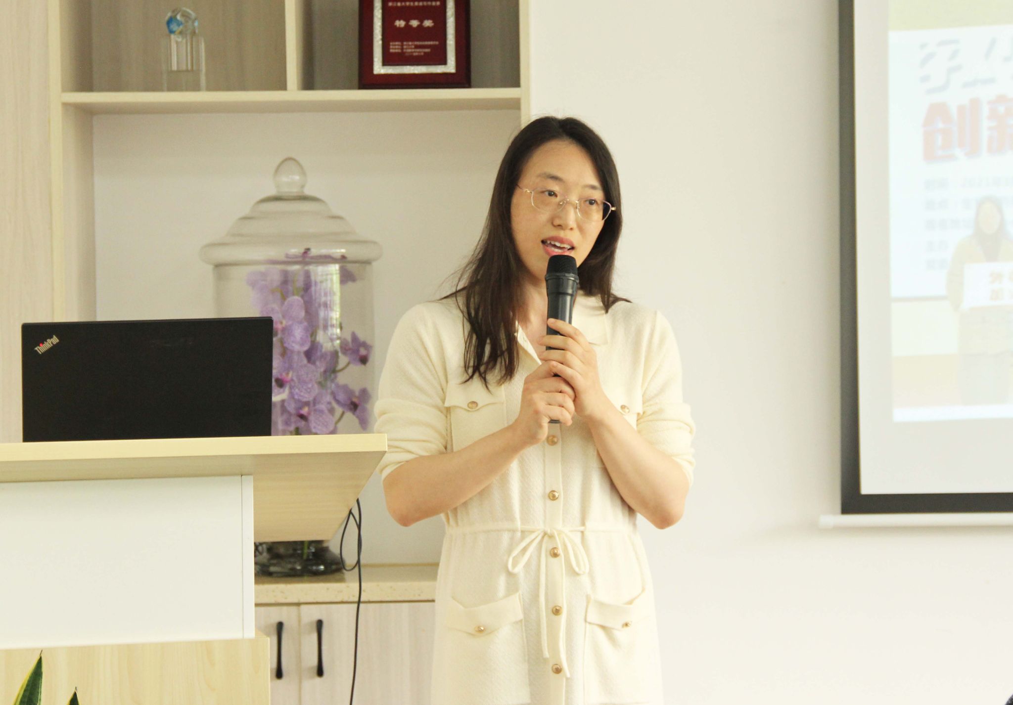 潘惠副教授以“课程思政视域下《跨文化交际》教学改革探索”为题,分享自己在剑桥大学的访学经历和对跨文化交际课程改革的思考。她介绍了部分出国访学项目的申报要求、选拔条件与资助方式等,鼓励抖阴