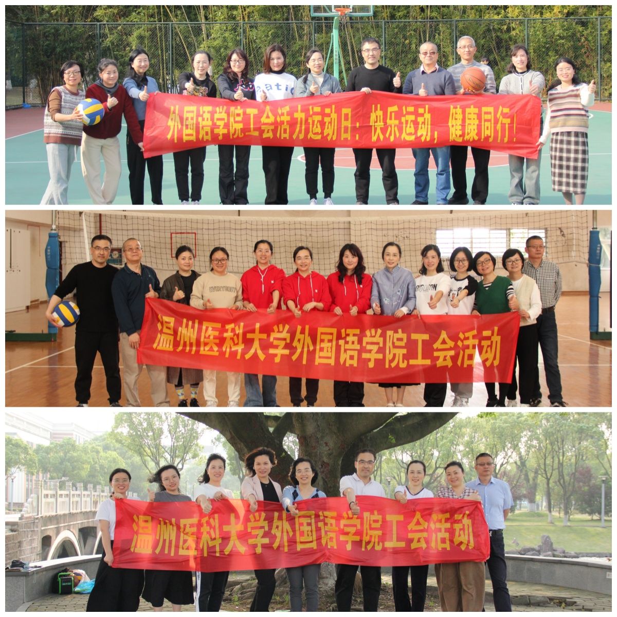 教职工的一致好评。大家纷纷表示,此系列活动真正做到了“周周有运动”,既愉悦了身心、锻炼了身体,也促进了教职工之间的感情交流,提升了教职工的凝聚力。
