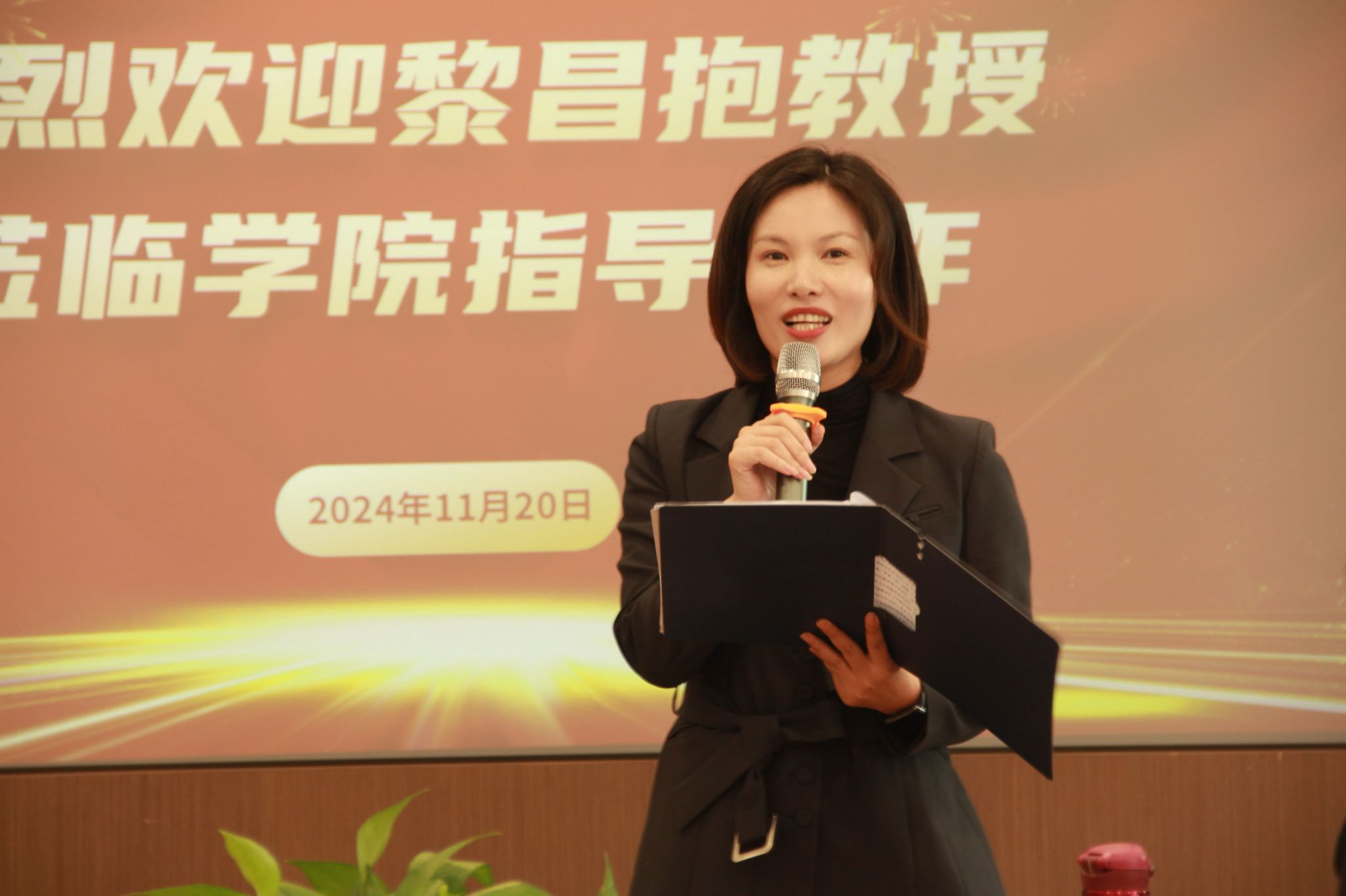 对黎昌抱教授的到来表示热烈欢迎,并向在座老师简要介绍了黎教授在翻译学、语料库建设等方面的主要成就。黎昌抱教授现任浙江财经大学语料库与跨学科研究院院长、国家一流专业(英语)建设点负责人,兼任中国译协会翻译理论与翻译教学委员会委员、中国英汉语研究会外语学科发展研究专业委员会常务理事等。