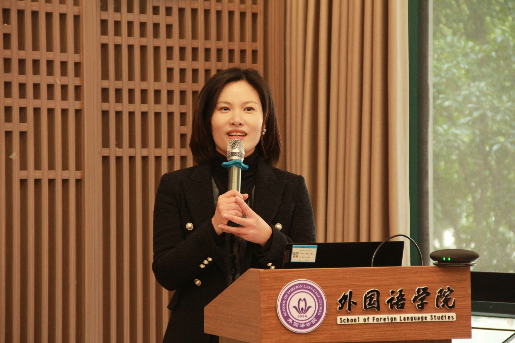 12月14日上午,副院长章艳乐发表了致辞,对徐锦芬教授的到来表示热烈欢迎,并向在座老师介绍了徐锦芬教授的主要成就。徐锦芬教授为华中科技大学二级教授,博士生导师,国务院政府特殊津贴专家,华中卓越学者首席教授,中国英汉语比较研究会二语习得研究专业委员会会长、中国英汉语比较研究会外语教师教育与发展委员会常务理事、中国英汉语比较研究会写作教学与研究专业委员会常务理事,TESOL中国华中区域专家委员会副主任委员,北京外国语大学客座教授。多家SSCI及CSSCI外语类核心期刊编委。曾获湖北省教学成果一等奖,湖北省社科优秀成果二等奖等荣誉。