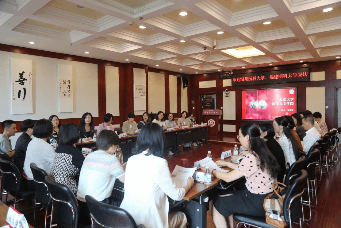 组织架构、党建工作特色、教学科研成果等情况。福建医科大学附属第一医院院长康德智结合自身丰富的医院管理经验,探讨了医学人文教育在医院实践中的融入路径,并强调了医学人文教育在培养高素质医学人才中的关键作用。与会人员围绕高校党建品牌建设、医学英语教学与课程思政融合、美学与艺术教育在医学教育中的应用等议题展开了热烈讨论,碰撞出诸多思想火花。调研活动尾声,北京大学医学人文抖阴