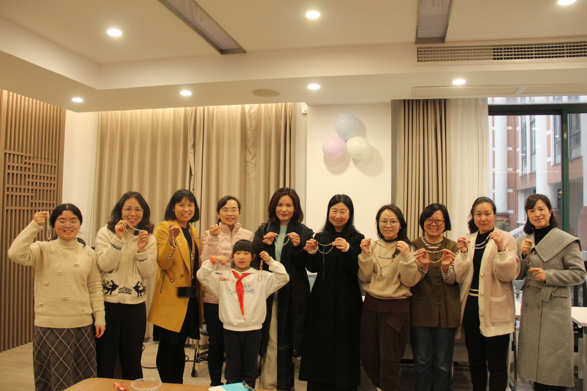 妇联副主席方赛繁老师担任主持,夏海鸥老师担任指导老师。夏老师耐心地向大家传授串珠的方法和技巧,并向大家展示了自己的作品。女职工们兴致勃勃地投入到手工制作中,她们互帮互助,交流分享制作心得,一颗颗小珠子在她们的巧手中逐渐变成精美的手链。看着自己的作品,大家脸上洋溢着满足和幸福的笑容。