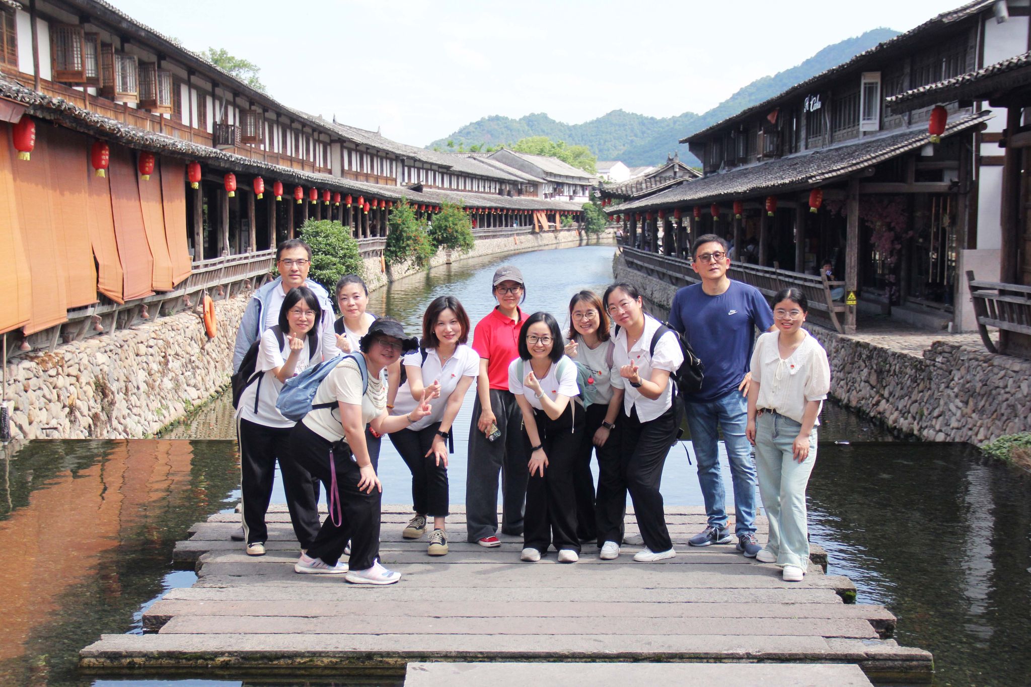 随后,大家来到了丽水古街。丽水古街,位于温州市永嘉县岩头镇东缘的蓄水堤上,又名“丽水长廊”,是古时候商贸的必经之路,街端有乘风亭、接官亭、丽水桥、丽水湖等。教职工们穿梭于古街中,漫步于江水边,感受历史的温度与文化的韵味。大家结伴而行,赏景拍照,谈笑风生,留下了美丽的倩影。