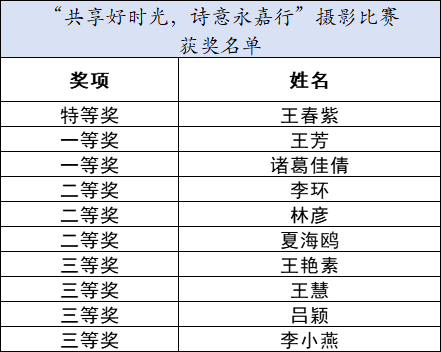 此次出行活动让大家释放了工作压力,既丰富了教职工的业余生活,又加强了教职工之间的沟通,还提高了工作热情。同时,抖阴还举行了“共享好时光,诗意永嘉行”摄影比赛,经过专家评审和大众评选,共选出特等奖1个、一等奖2个、二等奖3个、三等奖4个。活动结束之后,大家纷纷表示,在今后的工作中,将加强团结协作,振作精神,以更加饱满的状态投入到工作中,赓续教育初心,担当育人使命。