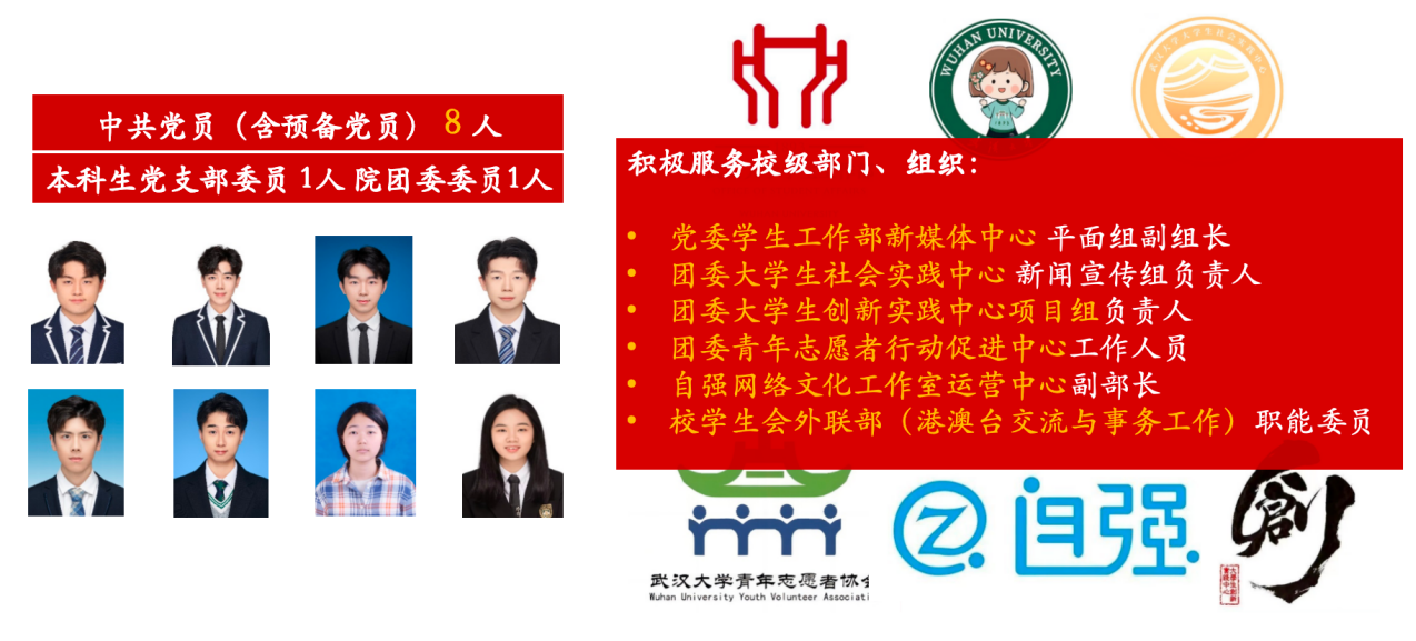 在社会实践的征程中,他们从“破浪经管之海,扬帆网安之舟”到“数字中国的智慧基建”,多次荣获校级奖项,展现出非凡的集体风采。“武大 + 你”“融心县智”等社会实践活动中,他们以青春之姿勇担社会责任,赢得了媒体的广泛关注与报道。