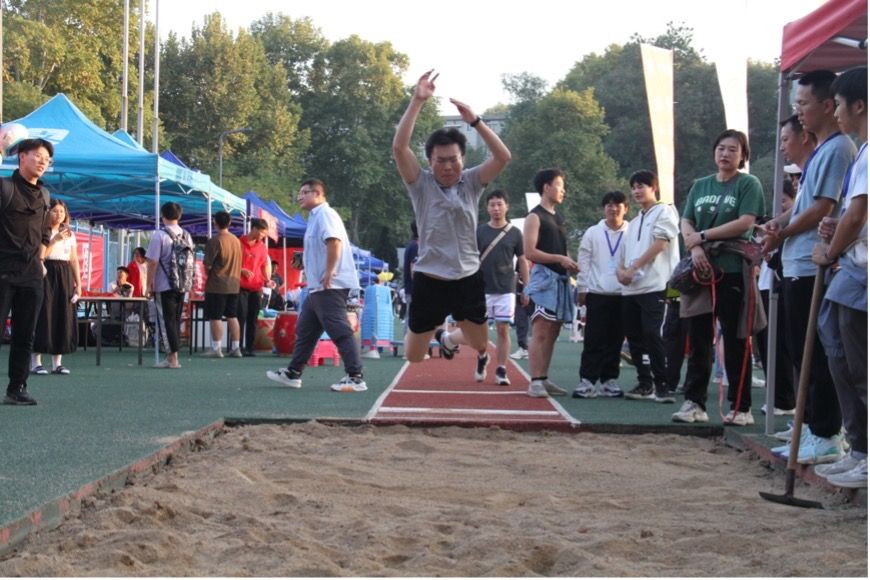 教职工代表以竞技实力,践行诺言。经过紧张而激烈的比拼,彭正明副院长获男子60米跑中年组第四名,涂国庆老师获立定跳远男子中年组第五名,刘路老师获跳绳女子组第七名。在团体项目比赛中,抖阴
