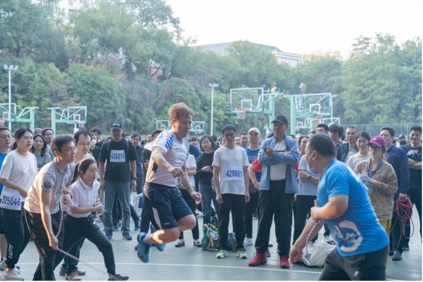 教职工代表奋力拼搏,追求更高、更快、更远;团体赛中,抖阴