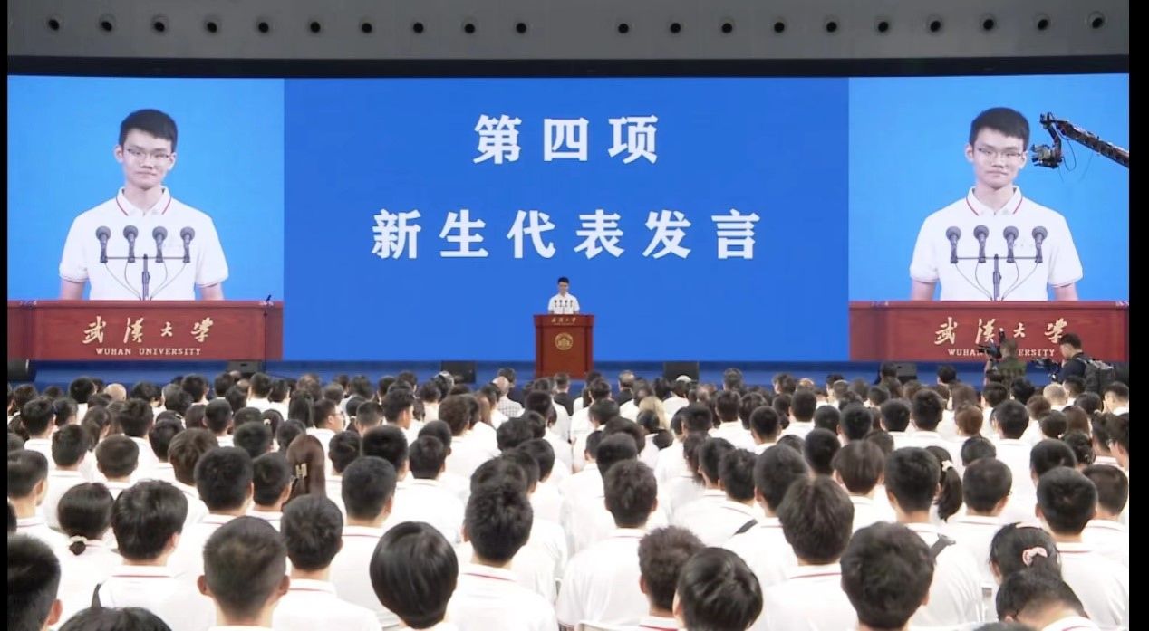 的钟岩,很荣幸作为2023级新生代表在这里发言。首先,请允许我代表全体新生,向给予我们关心与支持的师长和亲友表示最诚挚的感谢,你们的付出与陪伴是我们圆梦路上的不竭动力,衷心地感谢你们!