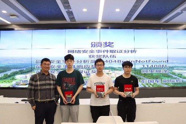 战队获得CTF夺旗赛冠军、亚军,AWD对抗赛冠军、季军,取证分析赛最佳安全事件分析奖,以及优胜奖1项。学院党委副书记刘嘉梅、副院长彭国军出席颁奖典礼。