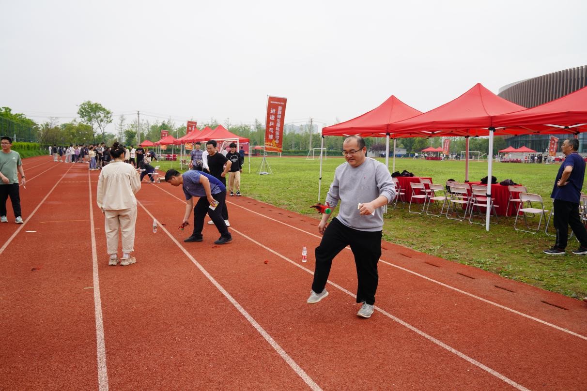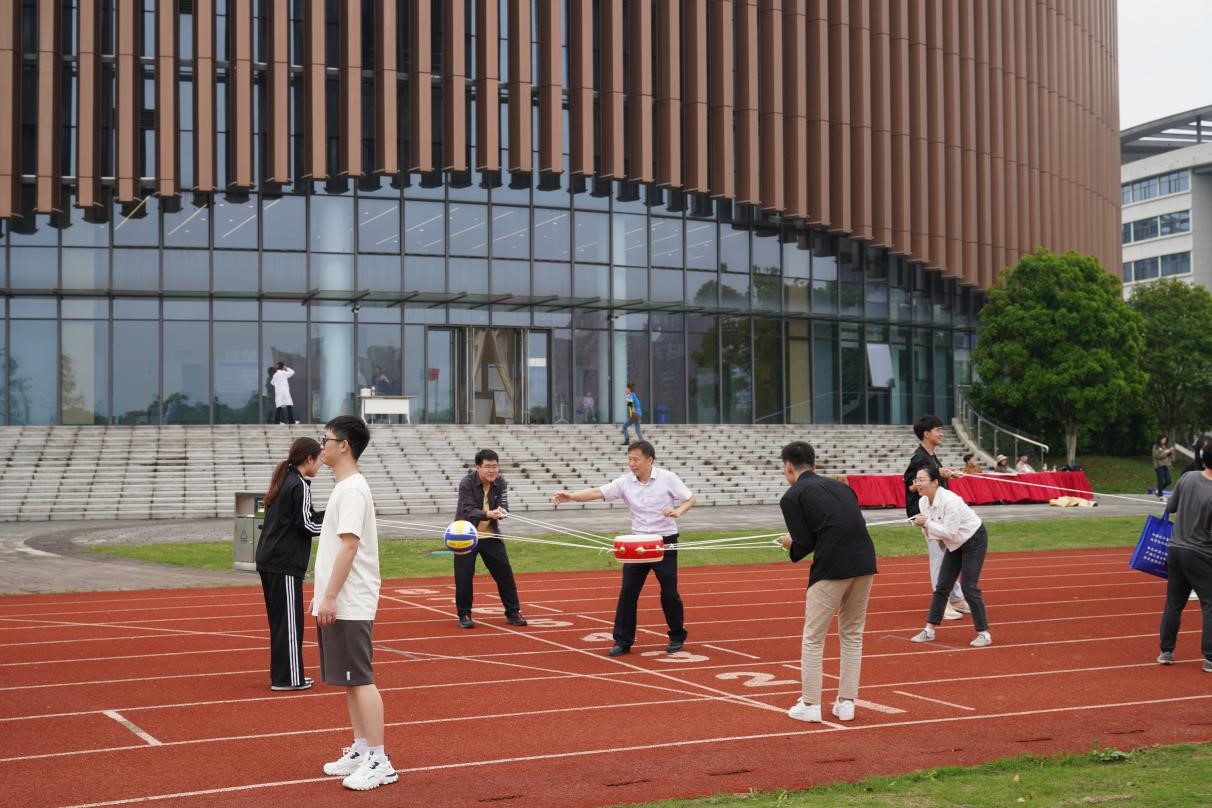 在网安基地运动场举办了首届师生趣味运动会。本次活动由党委副书记瞿成雄老师主持,党委书记赵波教授发表了热情洋溢的讲话,并宣布趣味运动会正式开始!教职工、本科生、研究生近三百人参加了运动会。