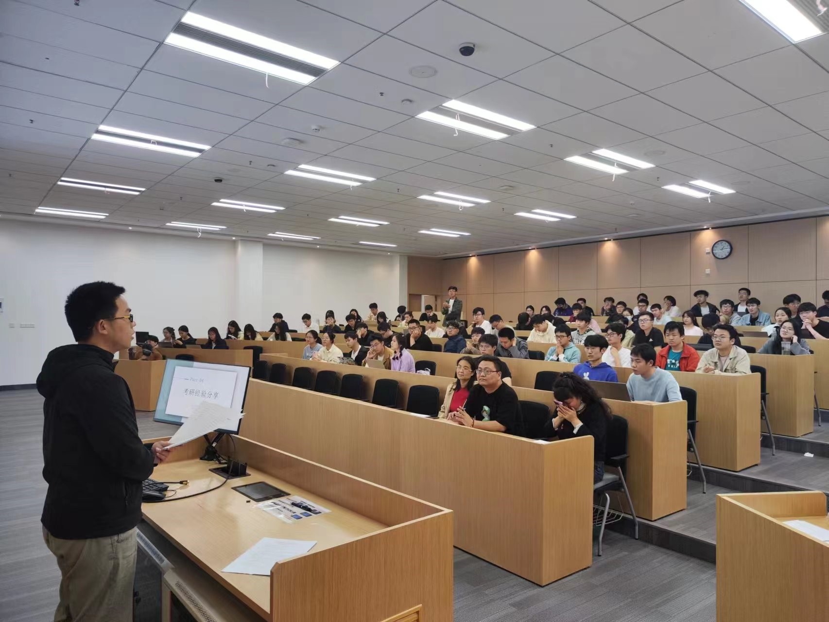 洪伟从同学们自我发展的角度阐述了分享会的意义。学院开展本次生涯规划经验分享会的原因,“无论是推免、考研、就业、留学还是自主创业,2020级的同学们正处于本科四年里最关键的、面临重大选择走向的一个阶段”。洪伟结合前期调研情况,针对同学们在考研、保研、出国、就业等方面的诉求告知年级基本情况。他认为调研数据中反映出大部分同学对于自己未来的发展还没有明确的目标和动力,缺乏准备。学院也将为同学们开展更多有针对性的经验分享,同学们也应摒弃“等帮靠”的坏习惯,为自己的未来负好责任。