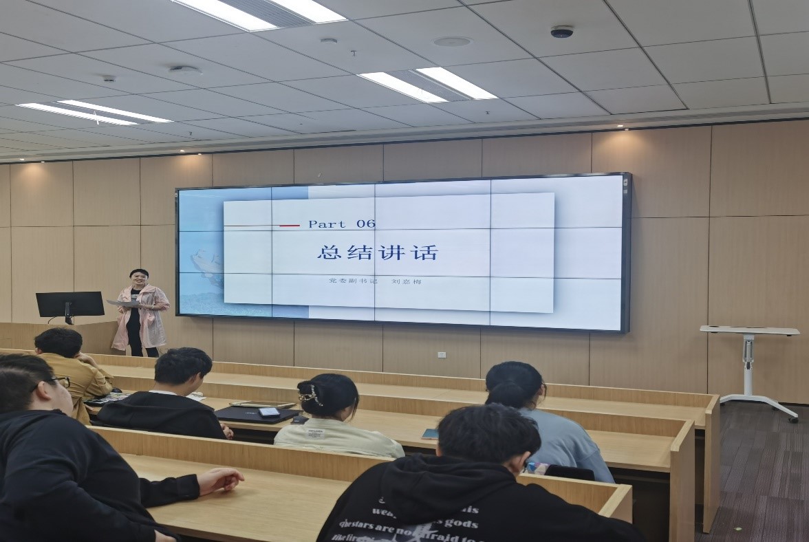 刘嘉梅总结讲话,她结合往届本科生在深造、就业等方面的数据,从明确目标、合理规划、积极行动三方面展开介绍。她认为,大三的焦虑和迷茫是可以理解的,但需要积极面对,可以通过全面研判个人特征,明确未来目标并确定实施方案。“与其坐而论道,不如起而行道”,每个同学都要做行动的主人,用活用好学校各类资源;同时,学院也将针对大家的不同选择召开不同类型的辅导咨询活动,帮助同学们提前规划、督促落实。