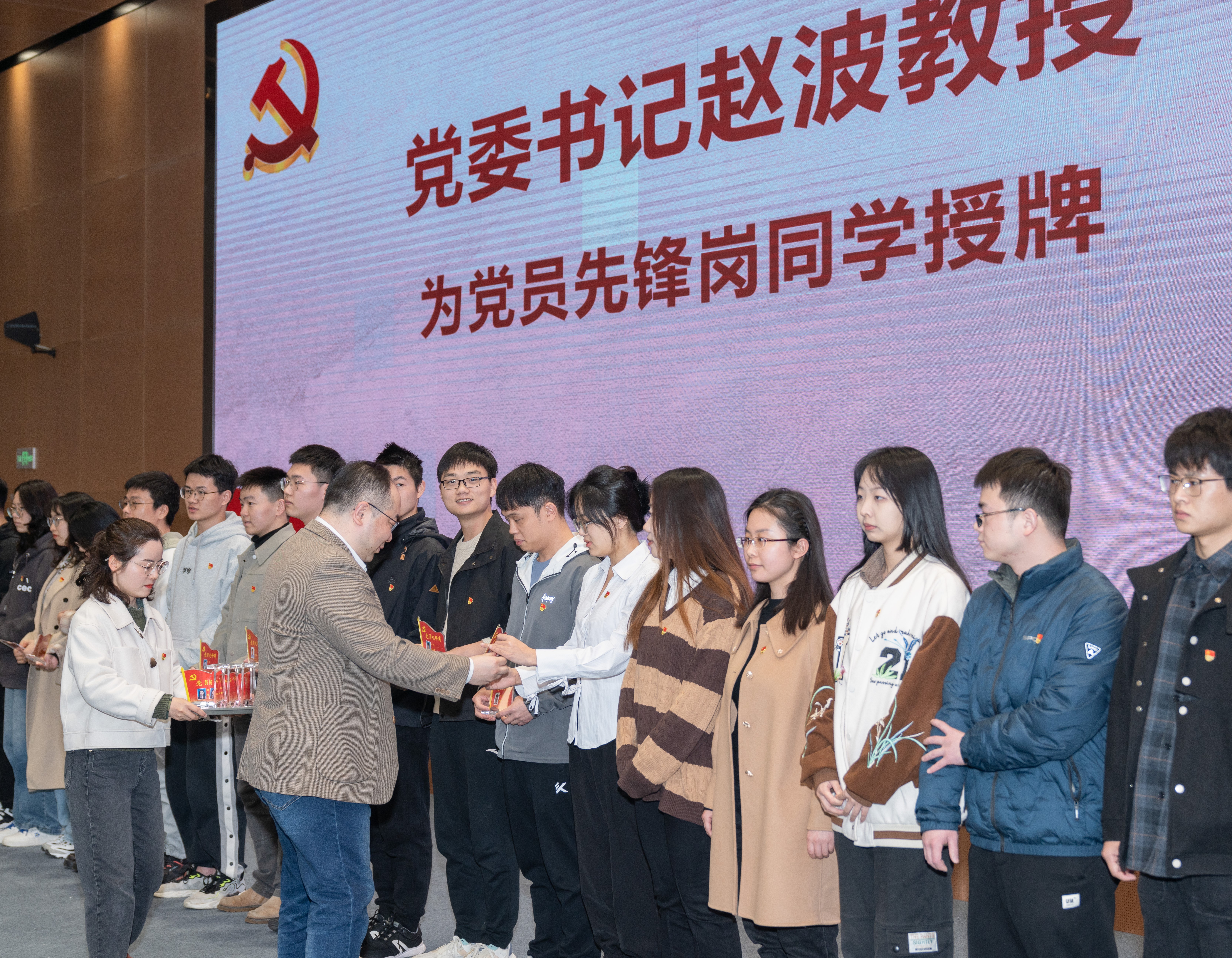 学院党委书记赵波教授为党员先锋岗同学授牌