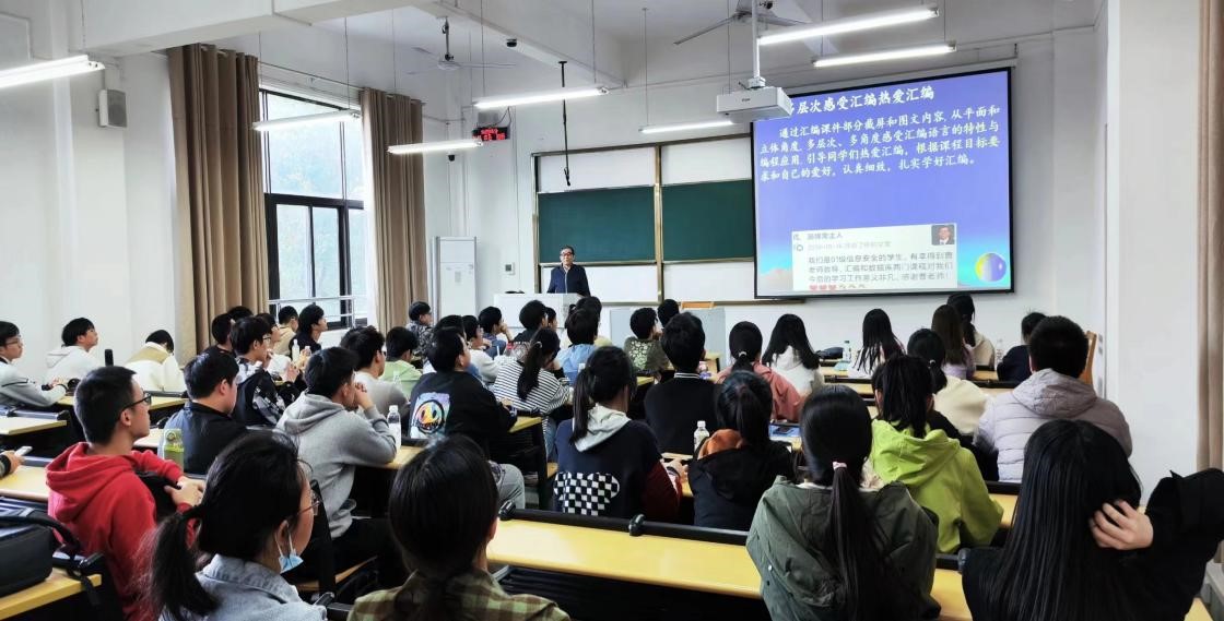 (学科办 赵健) 3月13日,计算机学院曹加恒教授应2022级八班班级导师赵健老师之邀,为学院2022级本科生开展汇编语言学习讲座。80余名学生参加,会议由学科建设与科研管理办公室主任赵健主持。