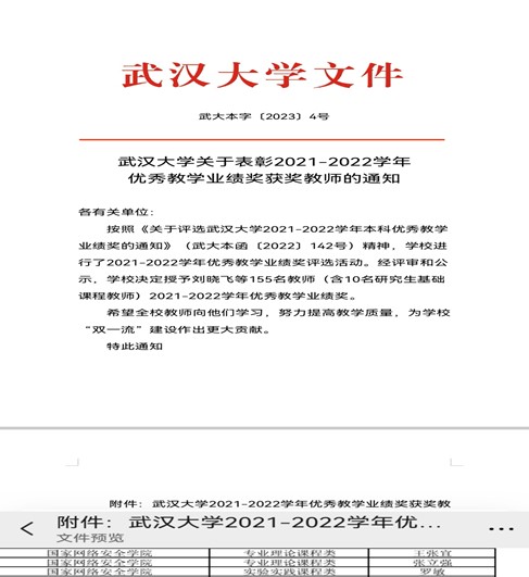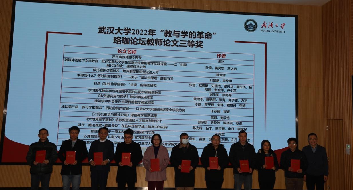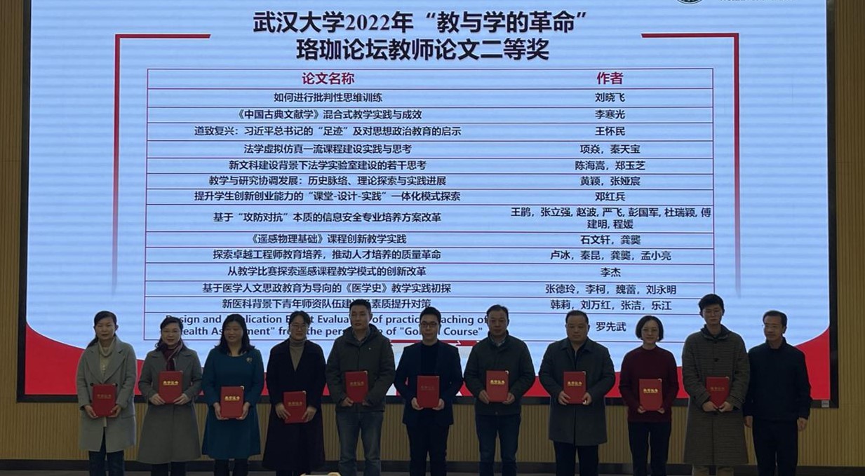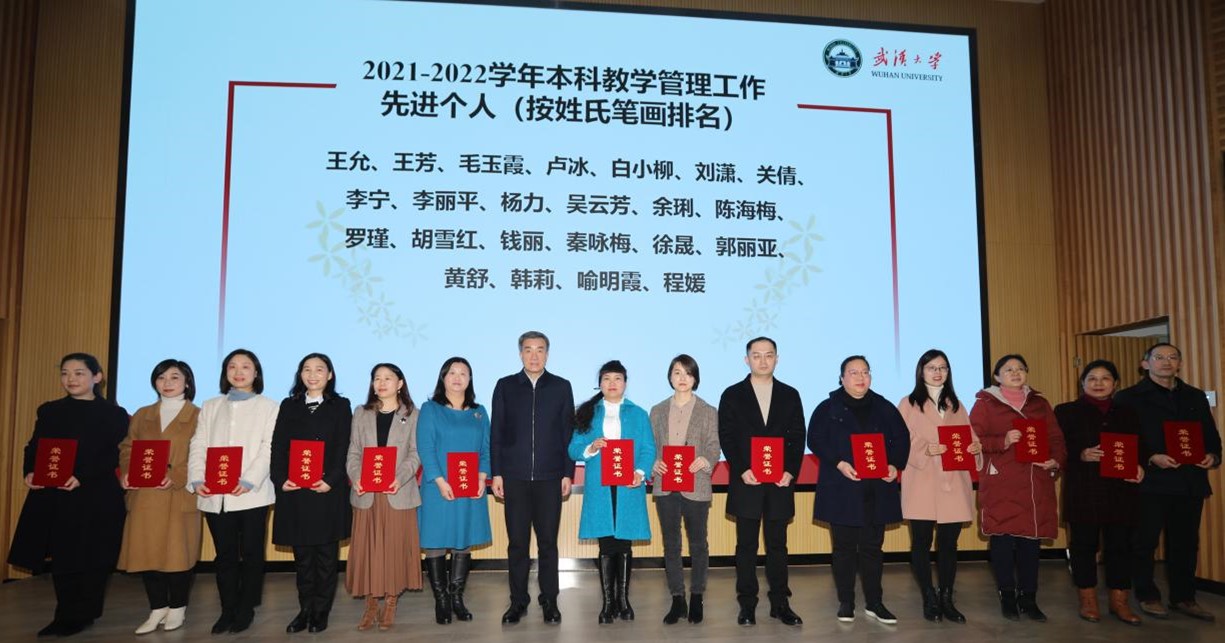 王鹃老师和丰存霞老师等分别获得2022年“教与学的革命”珞珈论坛教师论文二等奖和三等奖。程媛老师获得2021-2022年度本科教学管理工作先进个人。