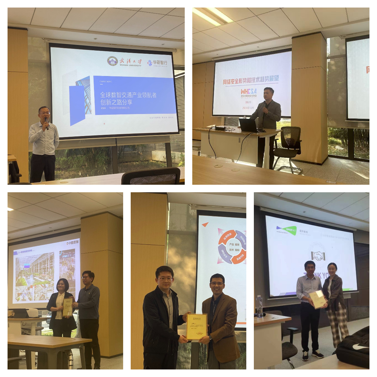 专业学位研究生教育改革,加强专业学位研究生工程实践能力培养。本次讲座邀请了华砺智行科技有限公司副总裁任学锋、武汉绿色网络信息服务有限责任公司产品经理张宏伟、武汉市网络安全协会秘书长刘悦恒、北京天融信科技集团车联网安全总监孙秉稷,以及湖南小格数智创始人王锦霞等多位专家,分别就华砺智行数智交通产业创新之路、DPI技术助力数据安全、网络安全形势与技术趋势展望、智能网联汽车网络安全技术与趋势、工业互联网赋能产业链绿色数字化转型等主题进行了分享和交流。