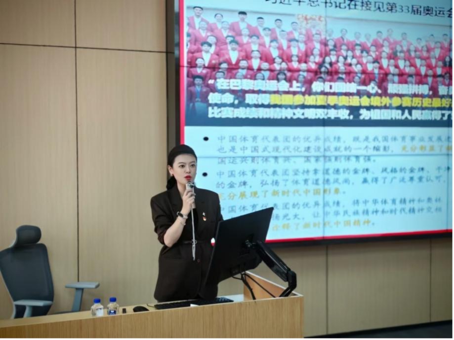 党委副书记刘嘉梅从巴黎奥运会中国奥运健儿的体育精神出发,回顾赛场上运动员奋力拼搏的风采,见证金牌和突破,共振荣誉与自豪。