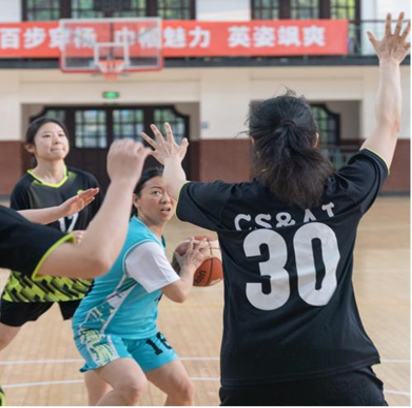 第二届教职工女子篮球赛在宋卿体育馆正式拉开帷幕。学院教职工女子篮球队首场迎战计算机人工智能联队,以6:2的比分斩获首胜。