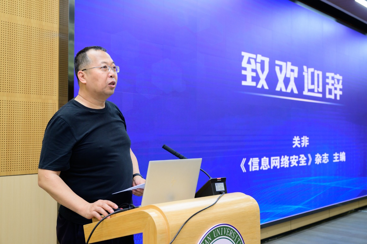 ,对与会学者表示热烈的欢迎,他指出,当前大模型、人工智能等技术的快速发展带来前所未有的机遇,也伴随更复杂的挑战。学院拥有一支高水平科研团队,承担多项国家任务,取得一系列具有国际影响力的研究成果。希望以本次会议为契机,与专家学者深化网络安领域的合作交流,共同推动网络安全技术创新与持续突破。