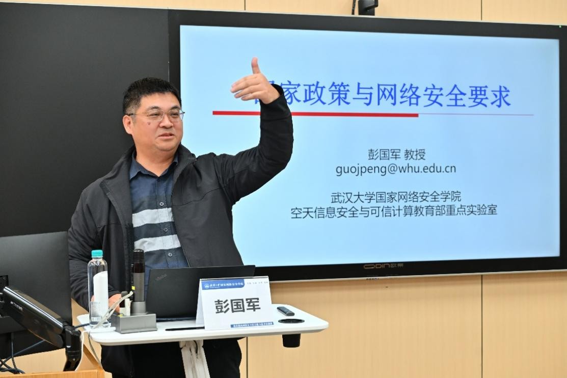 开班仪式后,学院副院长彭国军教授率先开讲,以《国家政策与网络安全要求》为主题,为培训班学员带来了深入浅出、精彩纷呈的第一堂课。