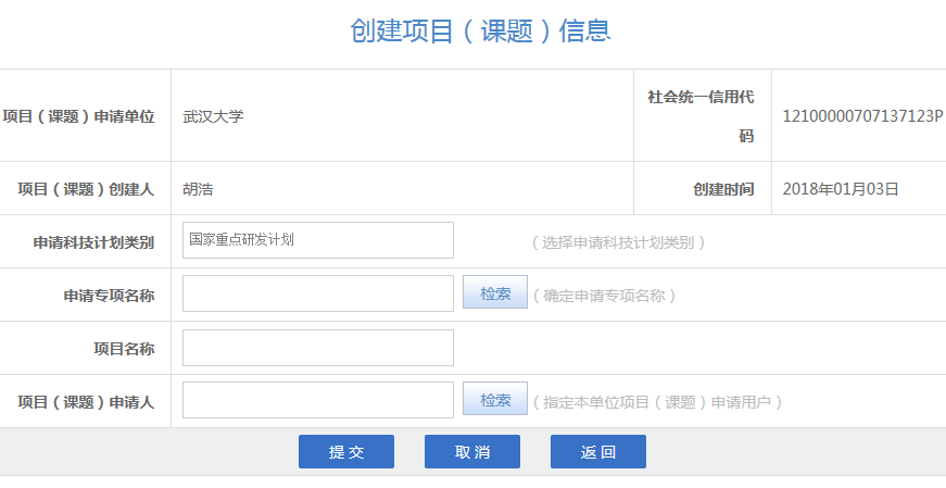 (1)已在国家科技管理信息系统公共服务平台开通账号和密码的 ,申报者需向科发院提供以下信息:申请专项名称、项目名称和项目负责人姓名。