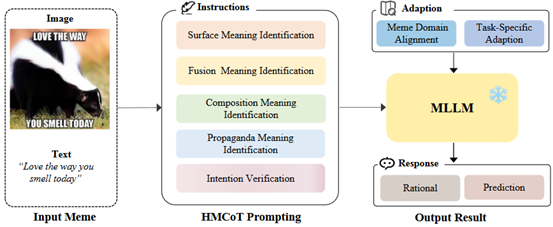 模因(Meme)在社交平台中被常用于以幽默的方式传递信息,而因其多模态的复杂性和隐蔽性,使得攻击者恶意使用这种特殊的载体来传播有害内容并避开社交平台的内容安全过滤机制。作者首先对现有检测工具的不足和挑战进行了深入地分析,从多模态语义融合(multimodal fusion)、视觉艺术(Visual arts)和宣传技术(Propaganda Techniques)三个新颖的角度全面审视了模因的独特属性及其如何导致现有检测机制失效的深层原因。为了应对三个挑战,作者提出了一个全新的检测框架,名为HMSafe。HMSafe融合了多模态大型语言模型(MLLMs)的强大能力,通过引入自适应提示(Adaptive Prompts)与思维链(Chain of Thought, CoT)推理机制,实现了对有害模因的精准识别。 HMSafe在公开有害模因数据集上表现出色,准确率达到92%。与基线相比,HMSafe有了实质性的改善,准确率相比于基线提升了14.82%至71.9%。HMSafe具有实用性可集成部署于多个MLLMs,并在实际场景中达到了88%的准确率。该项研究在在线内容安全检测领域取得了实质性的进步,对于维护网络环境的健康与秩序具有重要意义。