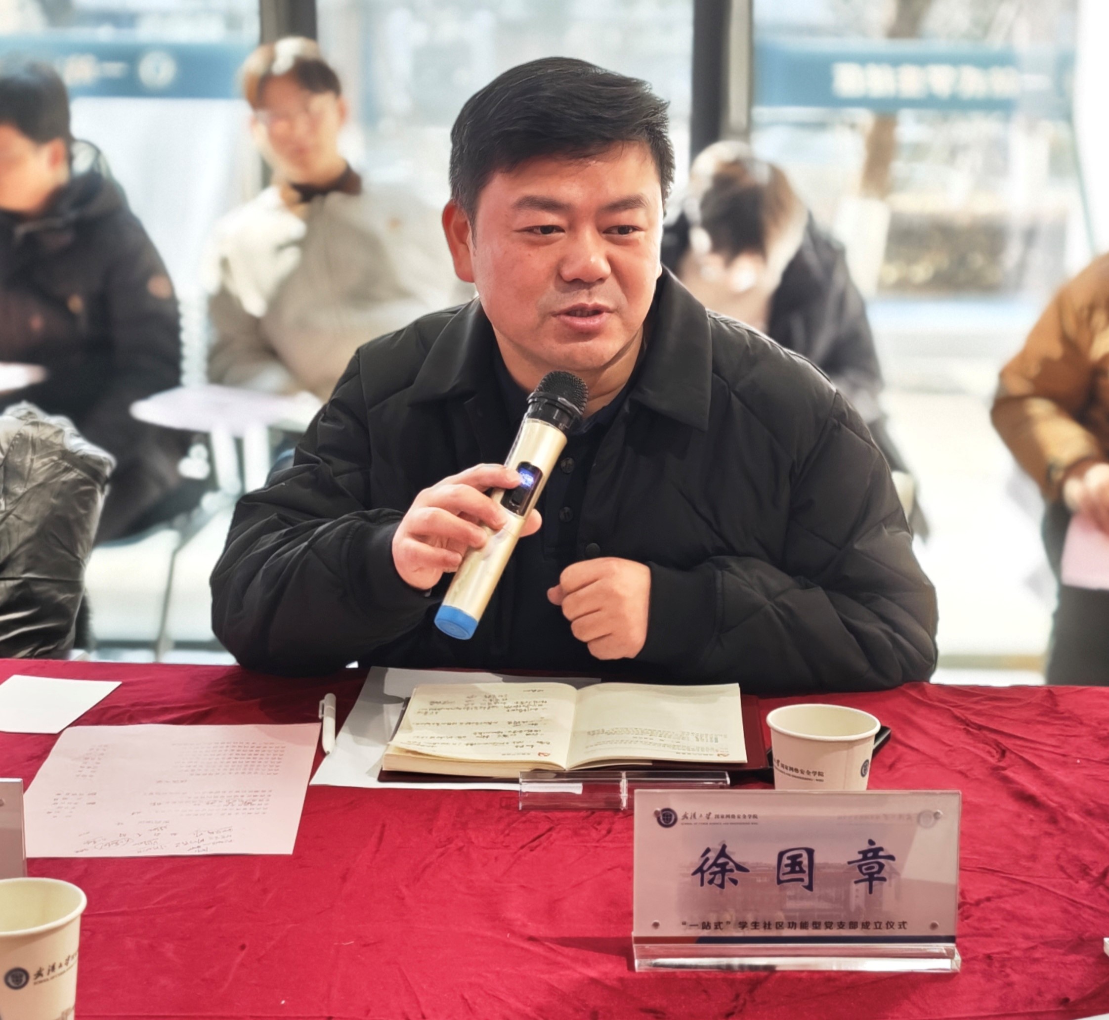 徐国章副部长总结讲话。他首先对支部的成立表示热烈祝贺,希望功能型党支部能建好四个平台,学子沟通交流平台、学生锻炼成长平台、学生互助帮扶平台、学院亮点展示平台,徐部长表示,基地新校区是一个充满机遇和挑战的地方,学院要顶层谋划、抢抓机遇,积极探索适合新校区特点的工作模式和方法,开发一批特色鲜明的活动或项目,打造网安学工品牌和特色。