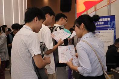 “对于我们而言,能够在基地参加招聘会使我们更加直接了解到行业的最新动态,对于日后的科研学习以及职业规划都有所帮助。”今天现场有大量非毕业年级的同学前来“了解行情”。在用人单位展位前,他们认真询问用人单位的专业技能需求及未来发展建议,完善自身职业生涯规划。